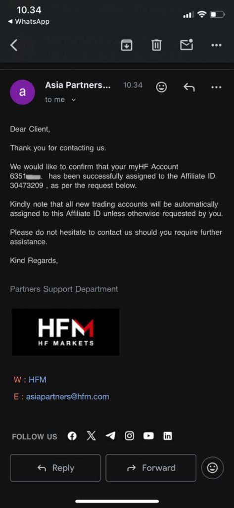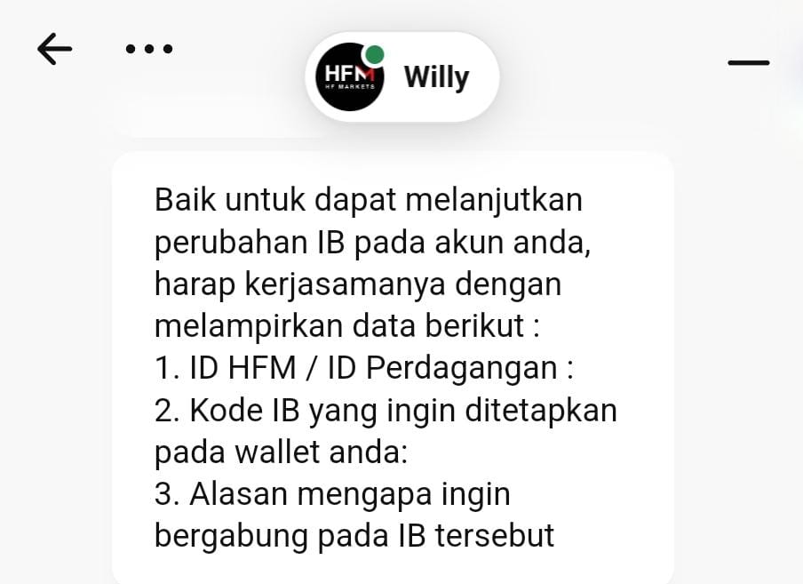Anda akan mendapatkan balasan dari Livechat dan saat itu juga akan diproses oleh tim HFM.