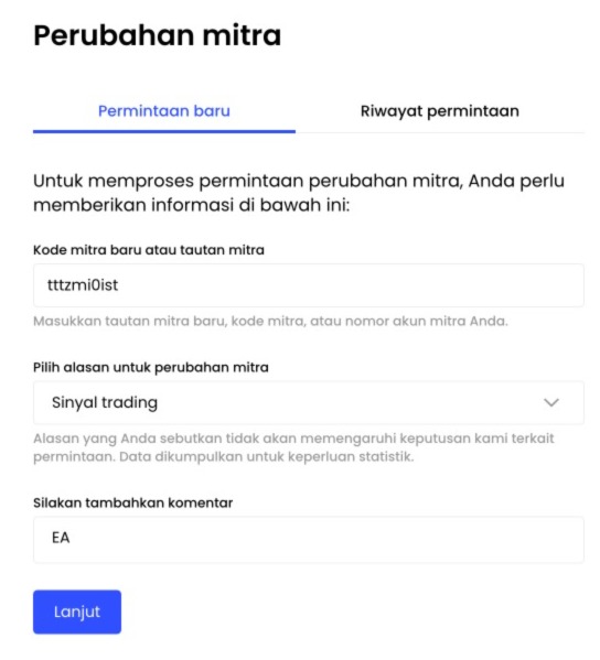- Alasan perubahan untuk perubahan mitra: Sinyal Trading